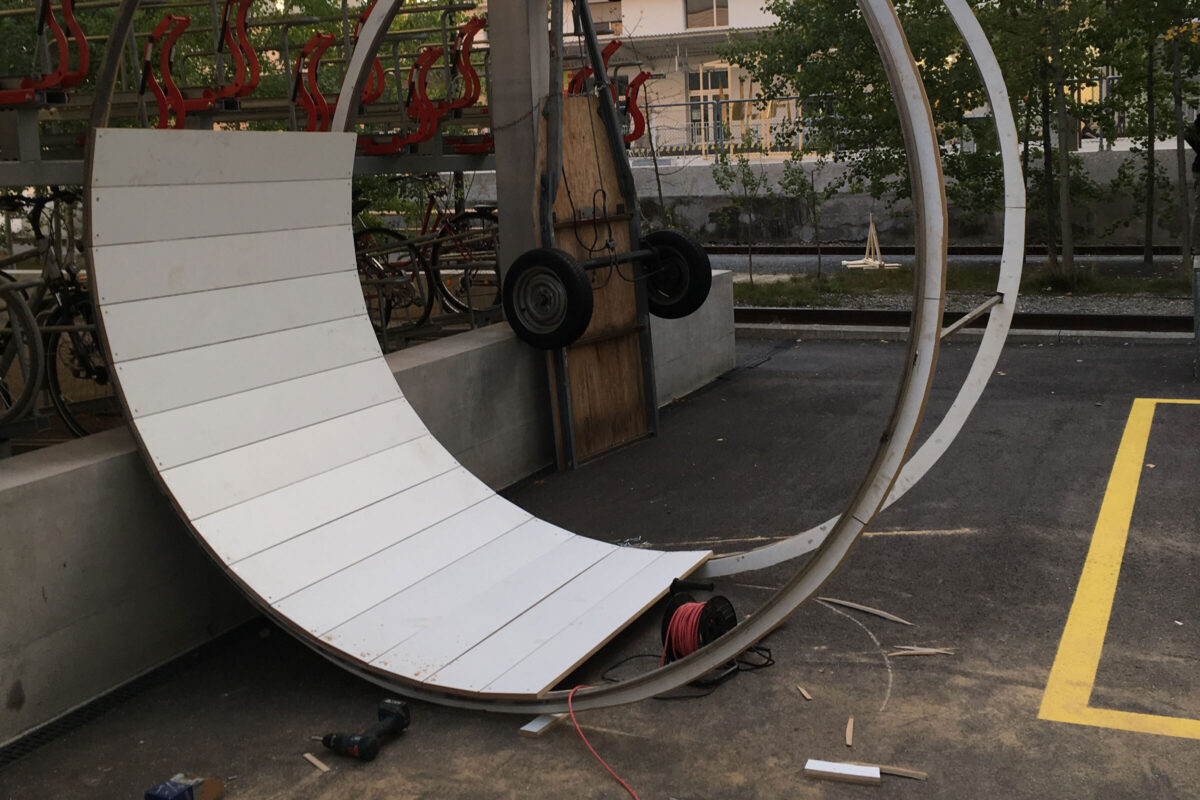 Zuerst musste das Grundgerüst geschweisst werden. Danach konnten die Holzplanken, welche die Lauffläche bildeten, angebracht werden. Es war spannend, eine solche Idee von der Planung bis zum Event umzusetzen. Dafür brauchte es viel organisatorisches und kreatives Geschick.