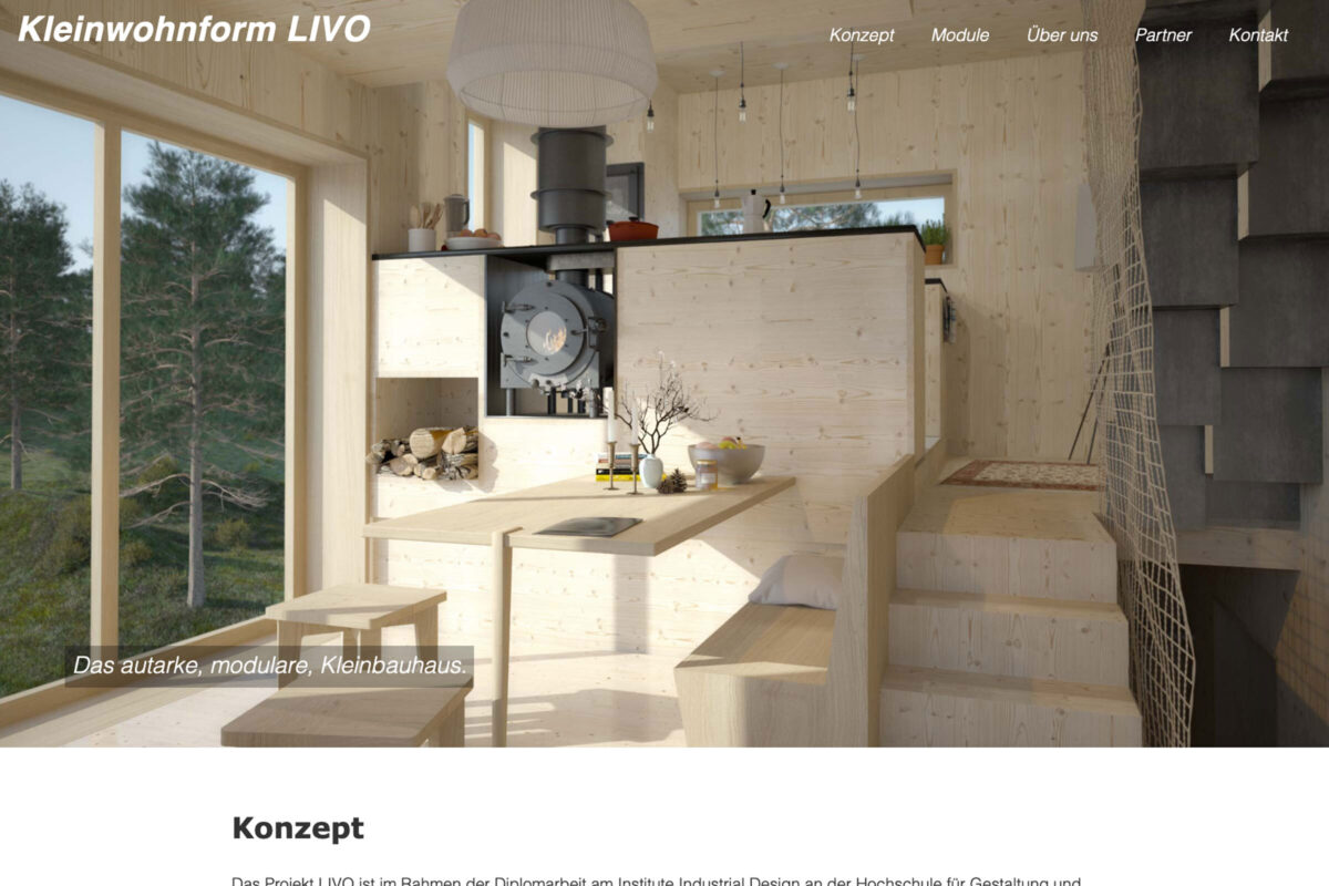 Erstellung einer Webseite für das Projekt Kleinwohnform LIVO. Dem Besucher soll anhand von Bildern und einigen Erklärungen, die Idee und der Aufbau der Kleinwohnform erläutert werden.